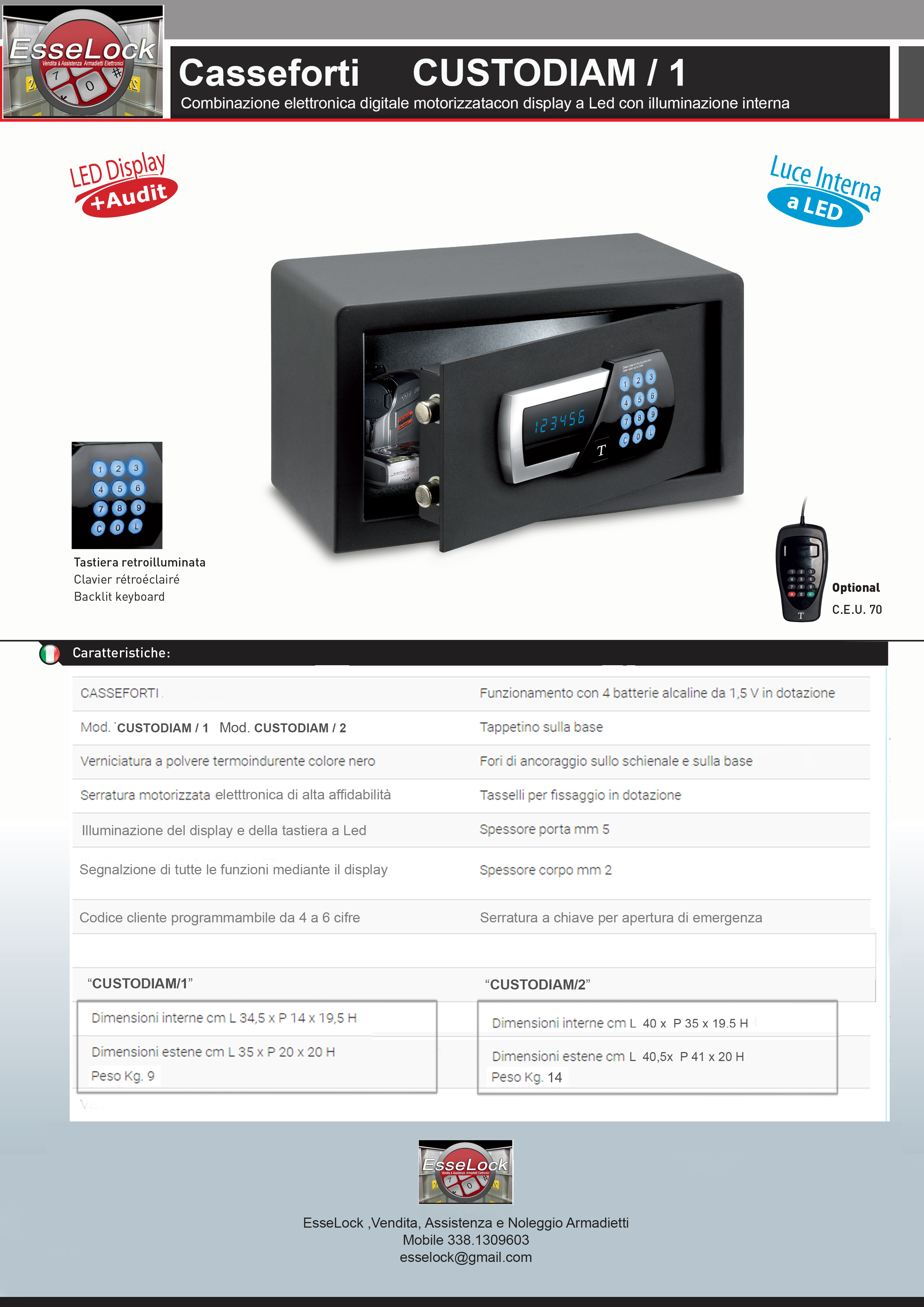 Adatto al deposito degli ogetti e Valori