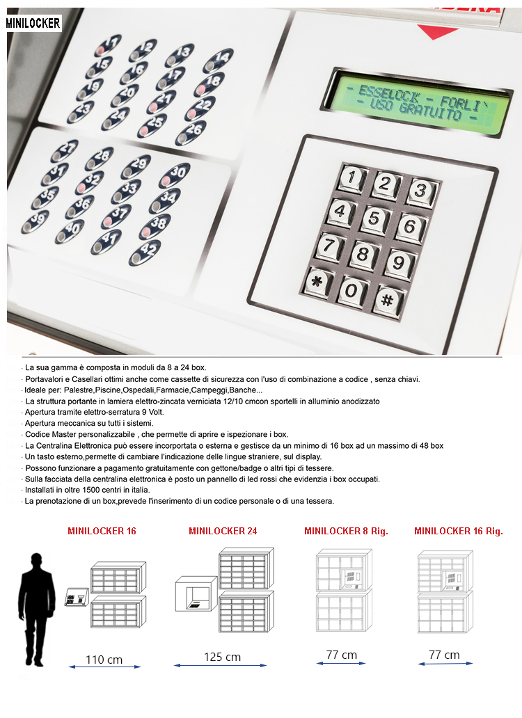 Tutti i boxes sono dotati di doppia apertura: una elettronica utilizzata dall'utente e una meccanica di emergenza utilizzabile in caso di mancanza di corrente elettrica.